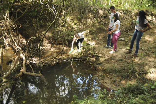 Desde o início do projeto, em 2016, Maria Rosane, os estudantes e os parceiros do zoológico lutam contra o assoreamento do córrego. No primeiro ano da defesa da água, foram retiradas 3 toneladas de lixo dali. Em 2017, mais uma.
