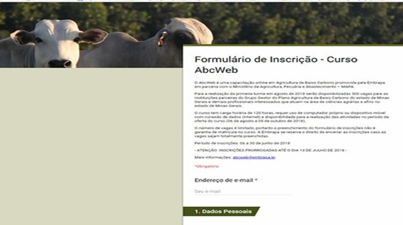 O número de vagas é limitado. Portanto, o preenchimento do formulário de inscrições não é garantia de matrícula no curso. A Embrapa ressalta que se reserva o direito de encerrar as inscrições caso as vagas sejam totalmente preenchidas.
