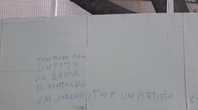 Muros em Belo Horizonte amanheceram pichados nesta quinta-feira 14 com apologia ao assassinato de jornalistas e atentados contra a imprensa. “Jornalista bom é jornalista morto”, era uma das mensagens nos tapumes na Avenida Alfredo Balena. “Colabore com a limpeza do Brasil, mate um jornalista, um artista, comunista por dia”, dizia outra.