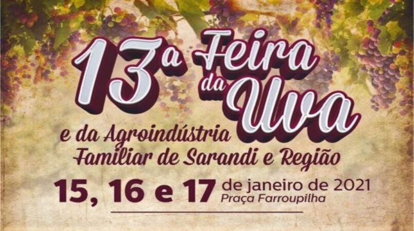 O município de Sarandi (RS) realizará, nos dias 15, 16 e 17, a 13ª edição da Feira da Uva e da Agroindústria Familiar. O tradicional evento foi planejado observando todos os protocolos de segurança e cuidados em decorrência da pandemia de covid-19.